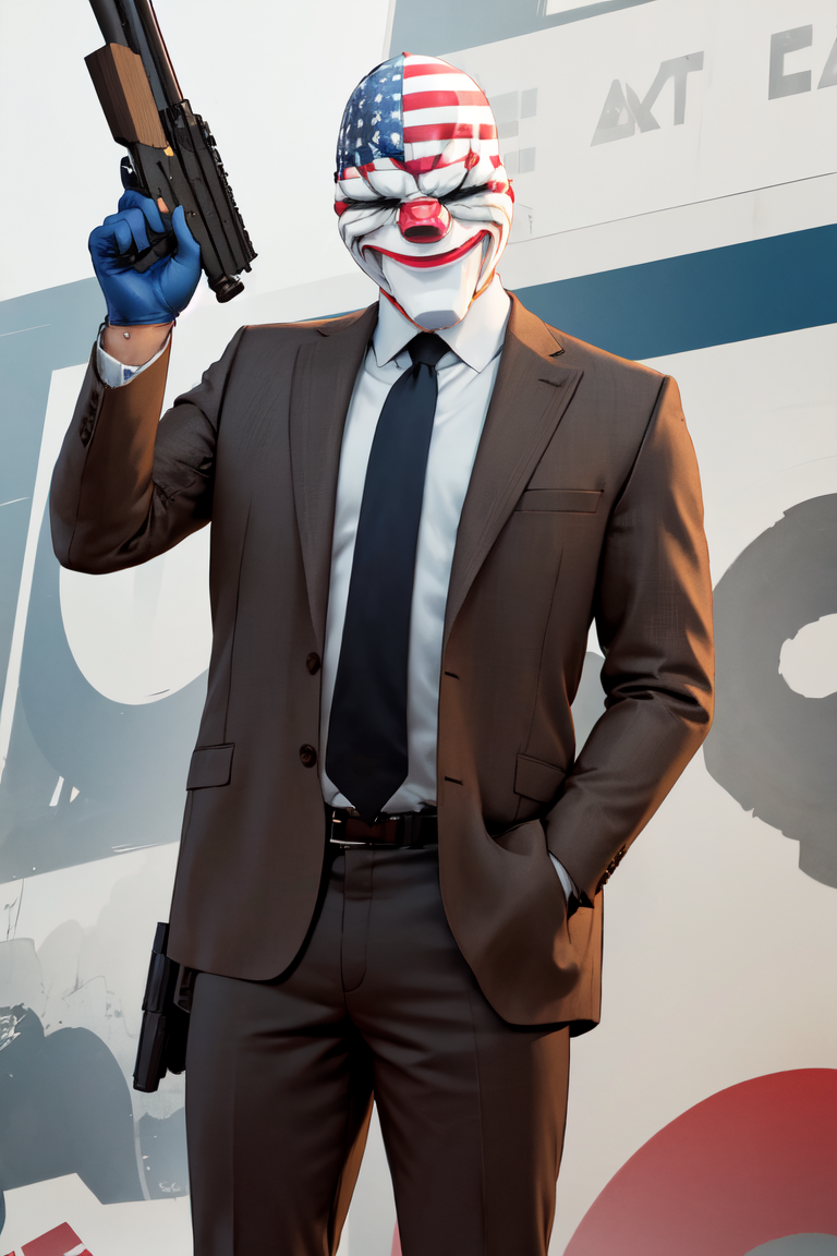 ネガティブプロンプトに "gun, holding gun" を使うと、Dallasは奇妙な物体を握らなくなります。