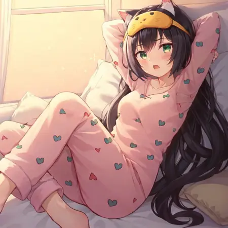 パジャマ:bare shoulders, detached sleeves, purple skirt を pajamas に置き換え: