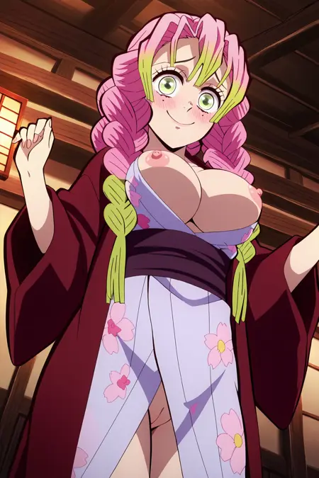 蜜璃的温泉和服,日式服装,和服,胸部露出,花卉图案,腰带,浴衣,腰绳