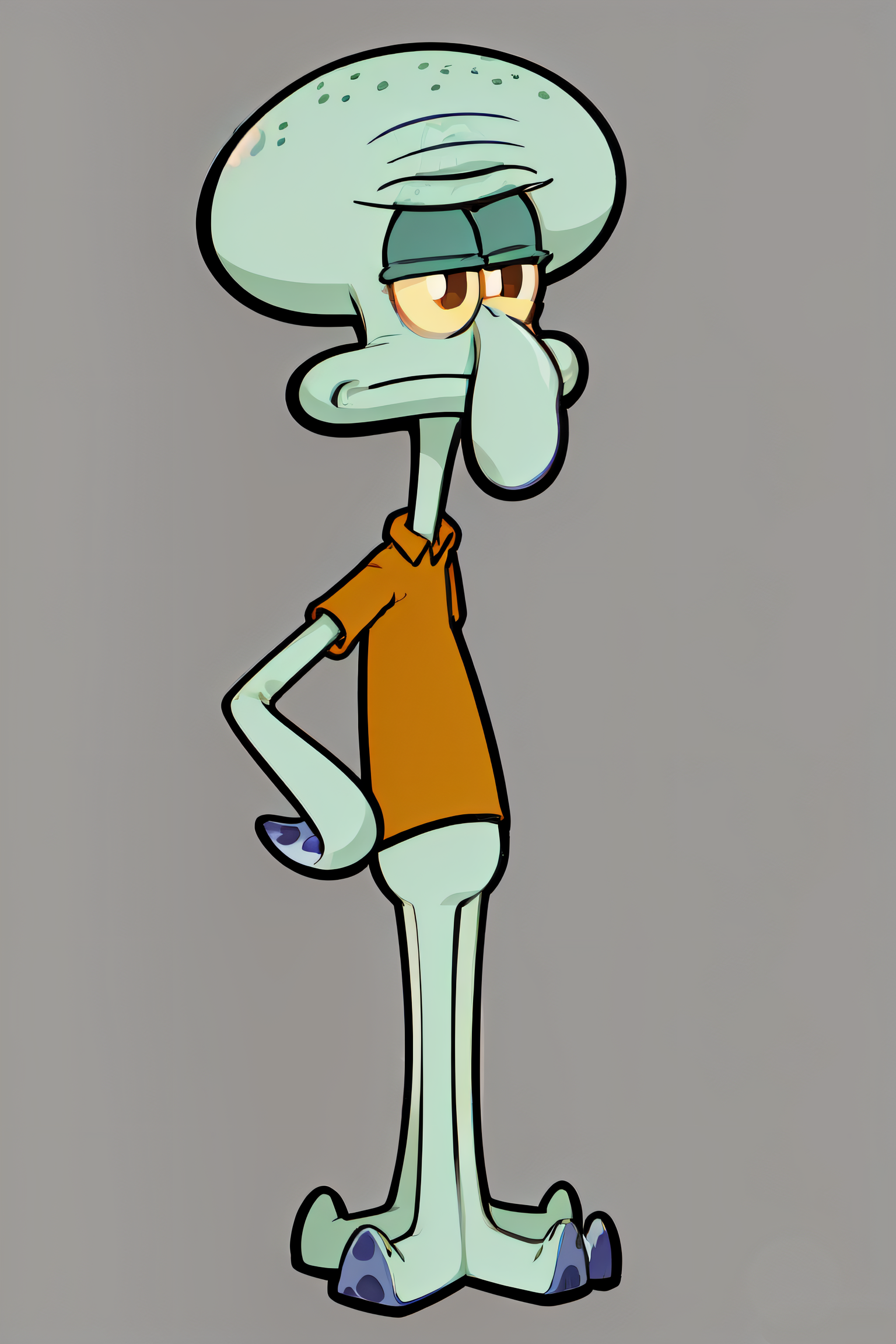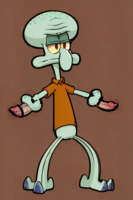 提示示例:squidward, solo, simple background, shirt, 1boy, standing, full body, male focus, pokemon (creature), colored skin, black background, lora:squidward-07:1