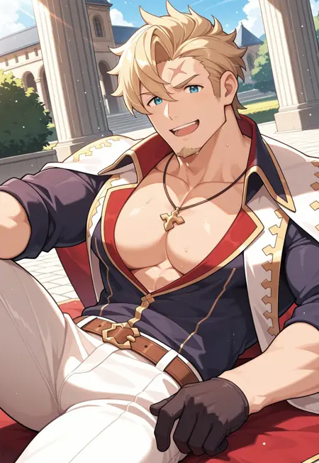 curran_dl, short hair, blonde hair, blue eyes, scar on face, facial hair, goatee