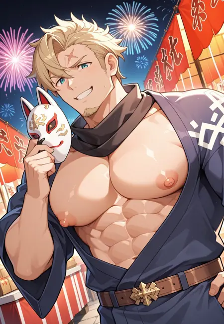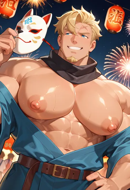 (약간 덜 귀여운 외모를 원한다면 bara와 mature male 태그를 추가하세요)
