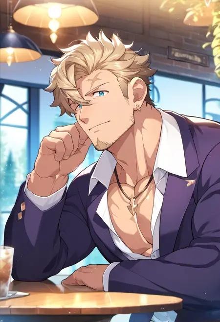 (ややカジュアルで、かわいらしさを抑えた外見を望む場合は、baraとmature maleタグを追加してください)