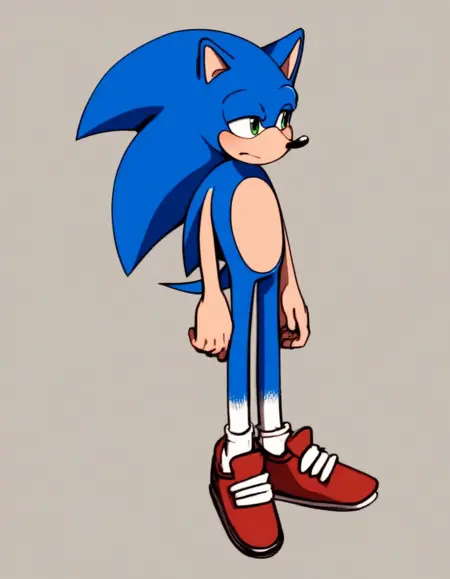 Movie_SonicEXE, long hair, green eyes, 1boy, animal ears, blue hair, shoes, socks, white socks, red footwear, furry, furry male, body fur, animal nose, flat color, two-tone fur, blue fur, sonic the hedgehog, white skin