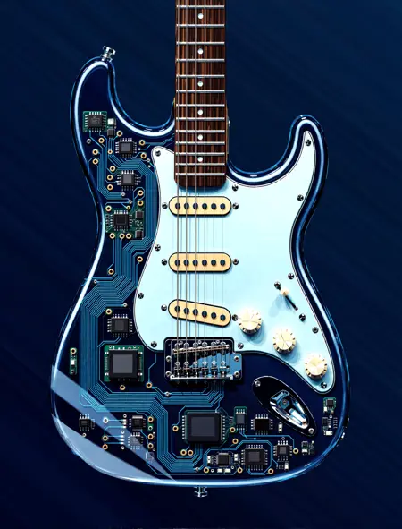 「電球の内部に生き生きとした街並みと建物が描かれたベクトルイラスト、ネオンライト」
