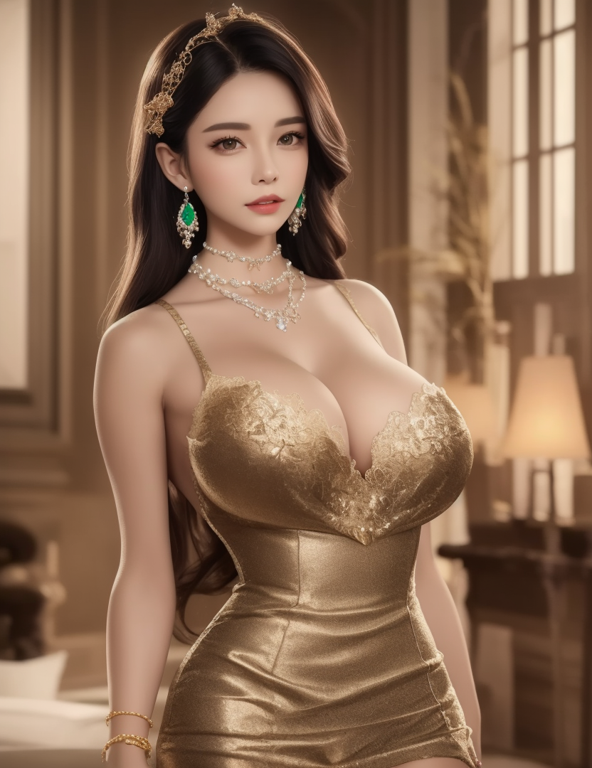 推奨キーワード:ultra realistic 8k cg, picture-perfect face, flawless, clean, masterpiece, professional artwork, famous artwork, cinematic lighting, cinematic bloom, perfect face, beautiful face, beautiful eyes, fantasy, dreamlike, unreal, science fiction, huge breasts, beautiful clothes, lace, lace trim, lace-trimmed legwear, absurdly long hair, very long hair, (rich:1.4), prestige, luxury, jewelry, diamond, gold, pearl, gem, sapphire, ruby, emerald, intricate detail, delicate pattern, charming, alluring, seductive, erotic, enchanting, hair ornament, necklace, earrings, bracelet, armlet,