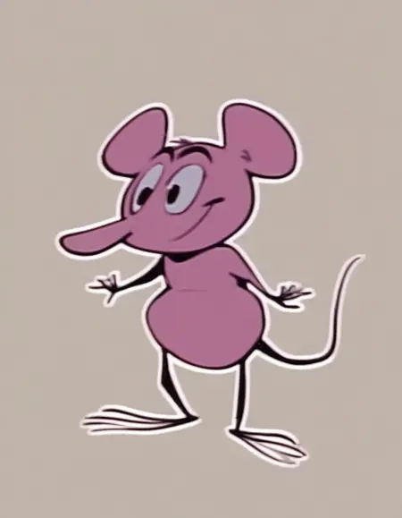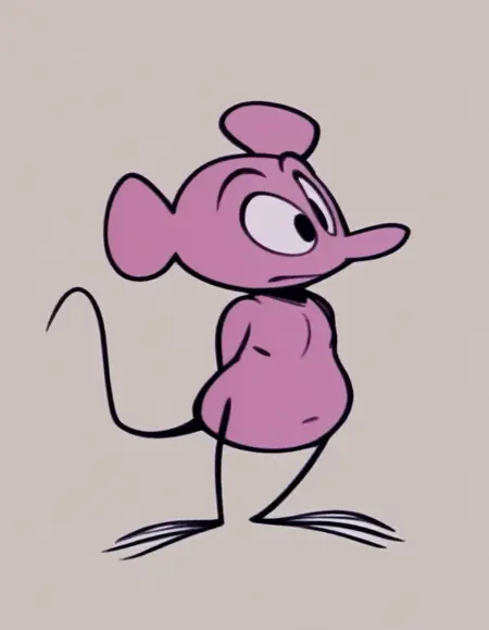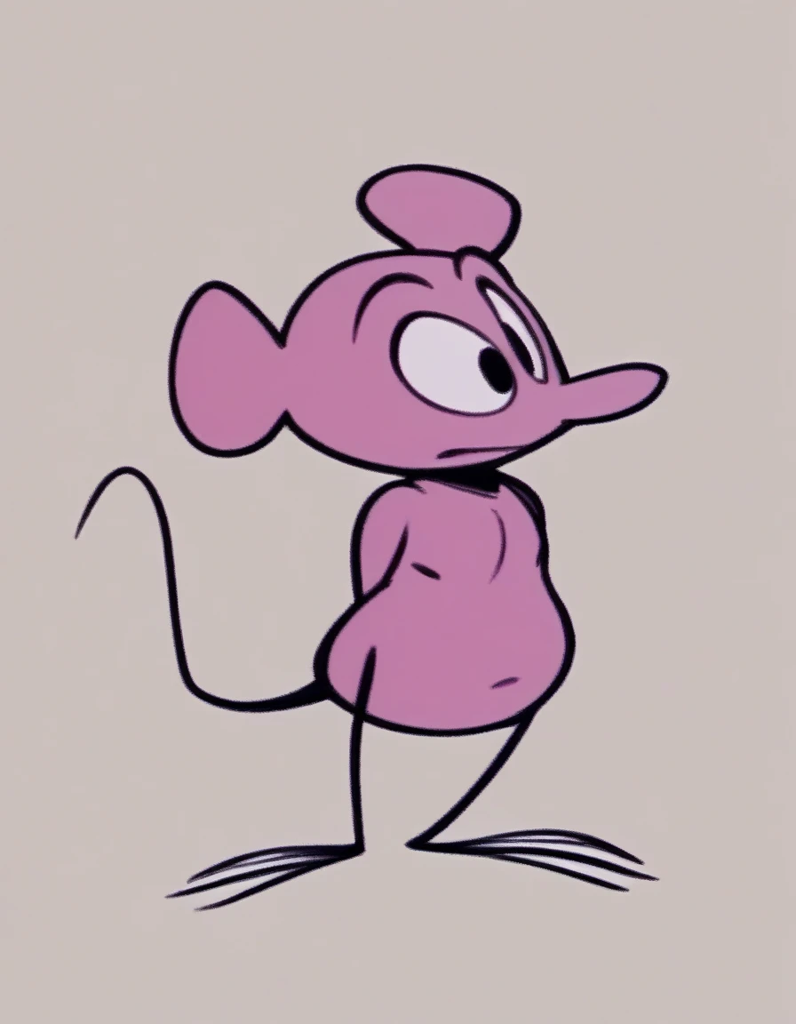 Ignatz_Mouse, 1boy, black eyes, no humans, mouse, long nose, magenta fur, tail,