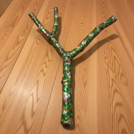 ff-gift(아이템/오브젝트)가 크리스마스용으로 포장된, (어둡게/잘) 조명된 (높은/낮은) 사진. 그것은 (표면) 위에 있다.