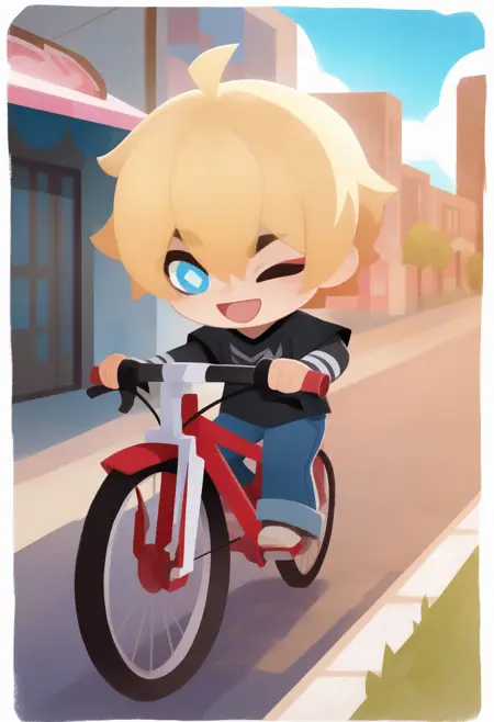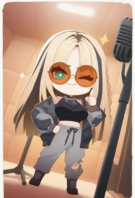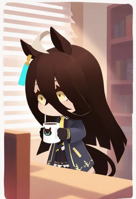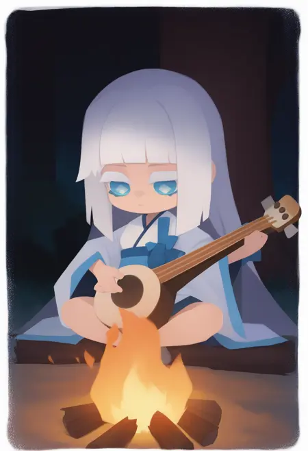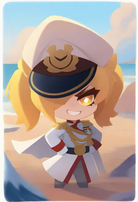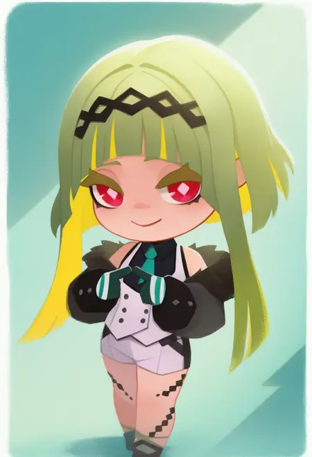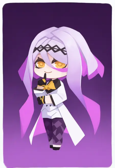 トリガー+追加タグ: onmyojistyle, chibi, white border, diamond-shaped pupils