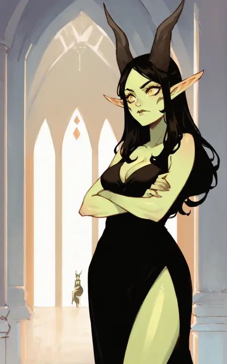 强化标签:黄眼睛、绿色皮肤、角、长发、黑发、尖耳朵、面部纹路、鹰身女妖、羽毛翅膀、紫色翅膀、白色翅膀、多色翅膀、双色翅膀