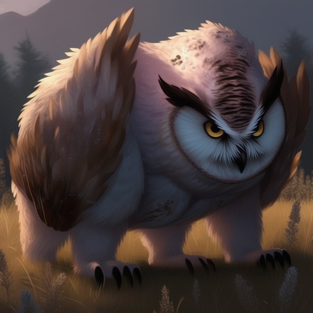ハイブリッドな特徴:オウルベアは、厚い毛皮に覆われた大きなクマの体に、巨大なフクロウの頭部を備えている。その目は鋭く、暗闇でも見通すことができ、くちばしは鋭く、危険である。