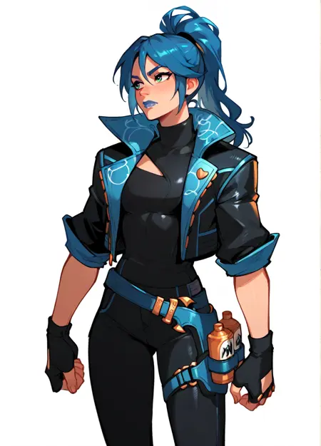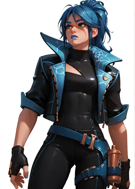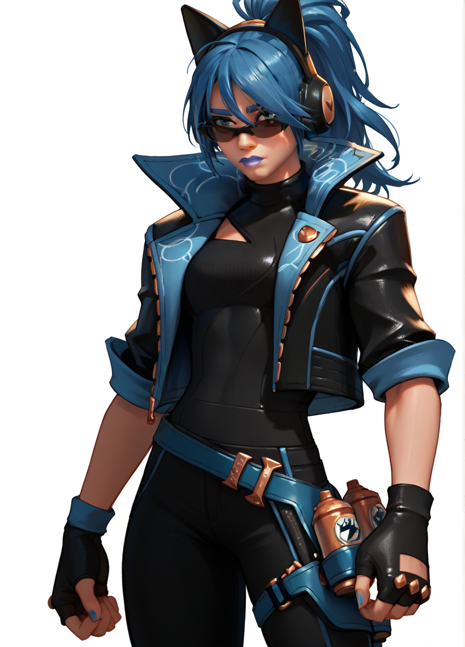1girl, solo, blue hair, blue lips, short hair, ponytail