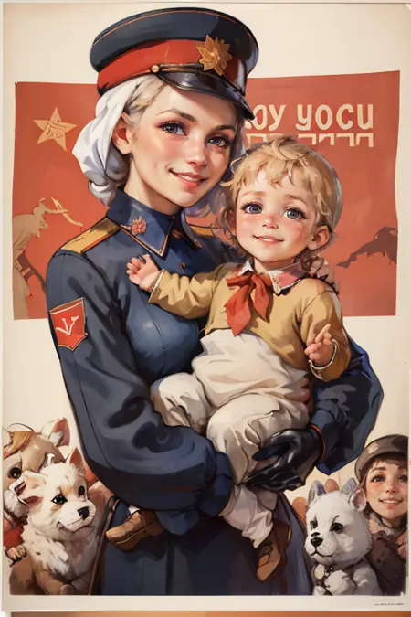 소비에트 포스터에 학습된 [\SD 1.5], 거의 모든 모델에서 잘 작동합니다