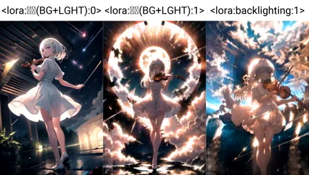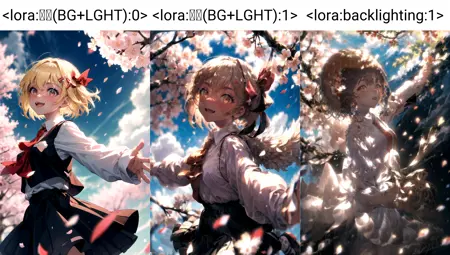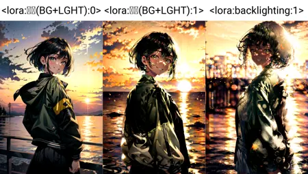 晖映 Enhanced Backlighting LoRA는 정말 멋지지만, 다른 여러 요소도 변경합니다. 이는 백라이트만을 강조하는 약간 억제된 버전입니다. 강도는 덜하지만 캐릭터 얼굴 형상도 크게 바꾸지 않기 때문에 장단점이 있습니다.