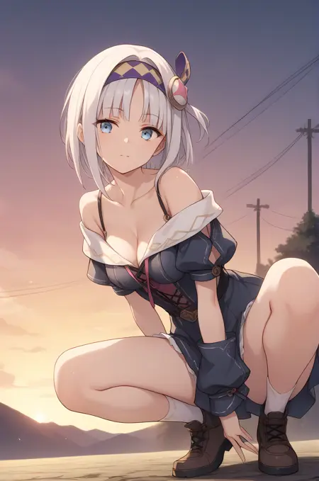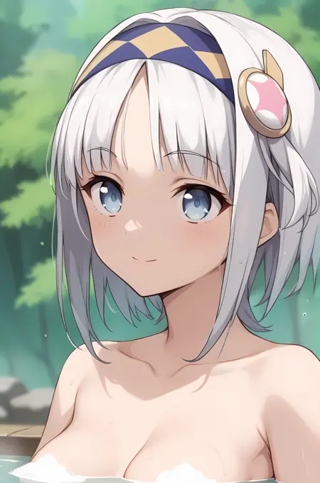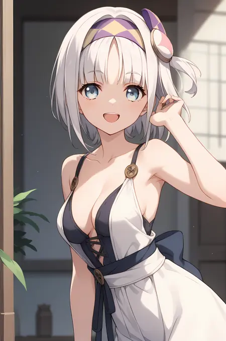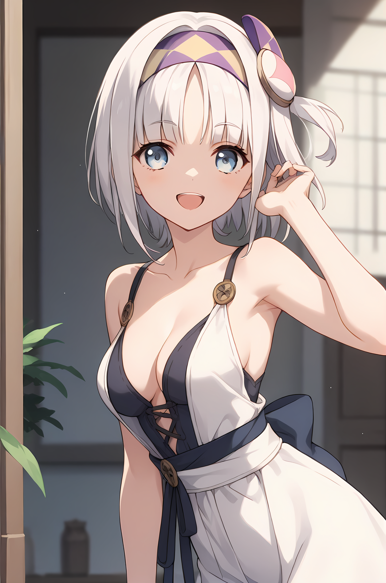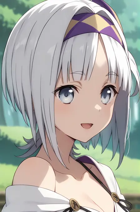 白髪、ミディアムヘア、ヘアバンド、髪飾り、青い目