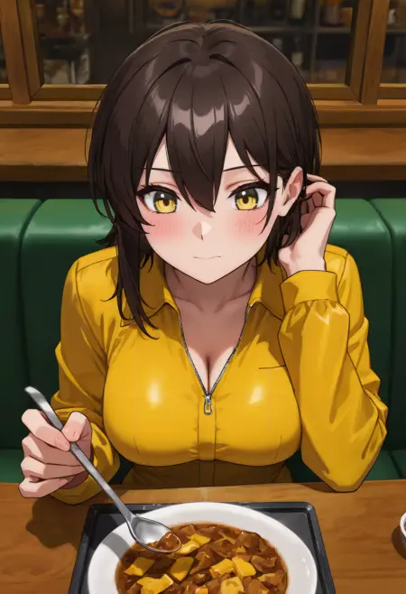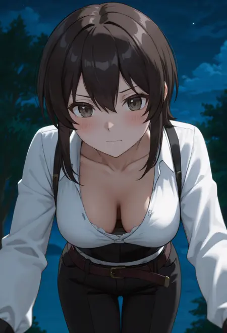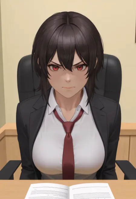 Looks tags: short hair, brown hair, sidelocks, hair between eyes, bangs, brown eyes