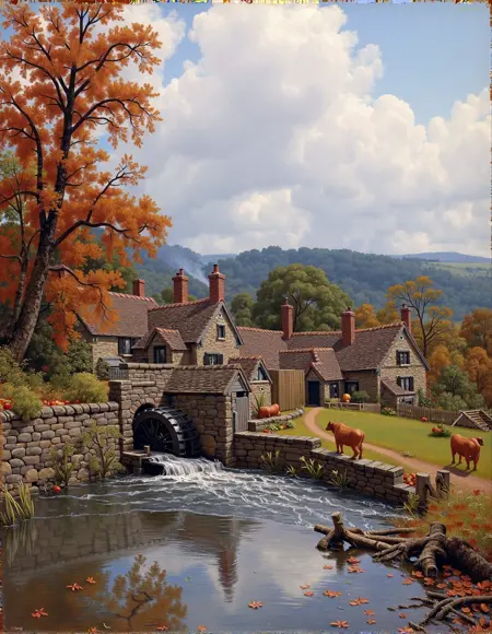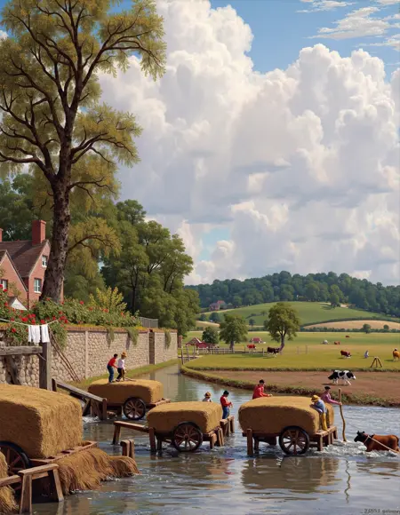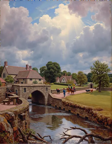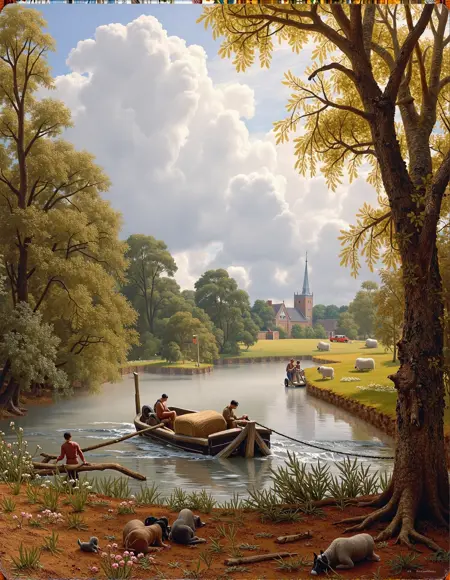코스터블의 그림은 초원, 강, 구름을 포함한 시골 풍경을 자주 묘사하며, 자연에 대한 깊은 연결성을 보여준다.