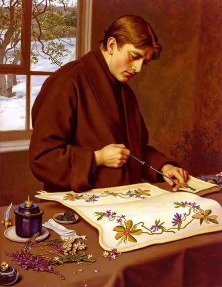 ミレイの絵画は、文学的、歴史的、聖書的な題材を、細部への緻密な注意と自然主義的な表現に焦点を当てて描いている。