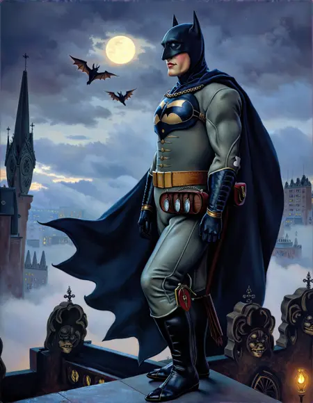 彼のスタイルは、非常に細部にこだわり、正確で、鮮やかな色使いが特徴である。