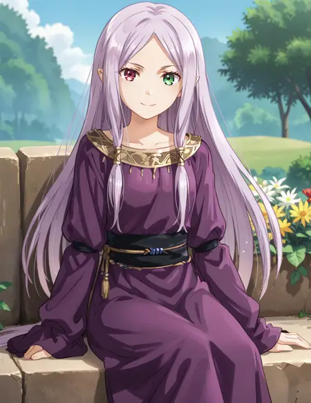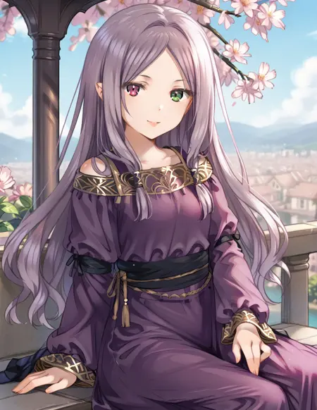 IdunnDefault, heterochromia,red eye,green eye, purple dress,