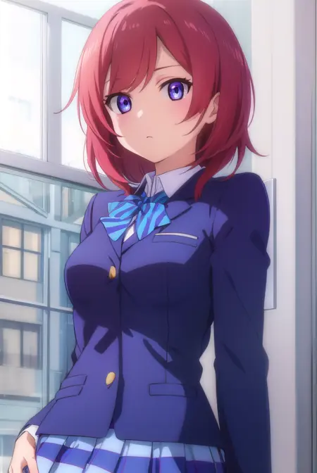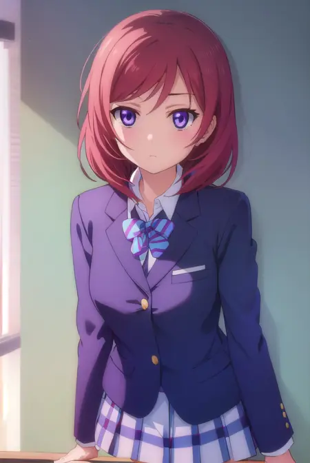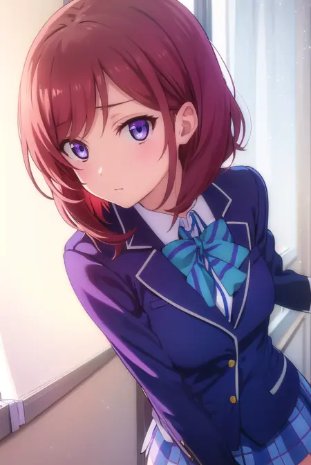 마키 니시킨오, (보라색 눈:1.1), 빨간 머리, 단발
