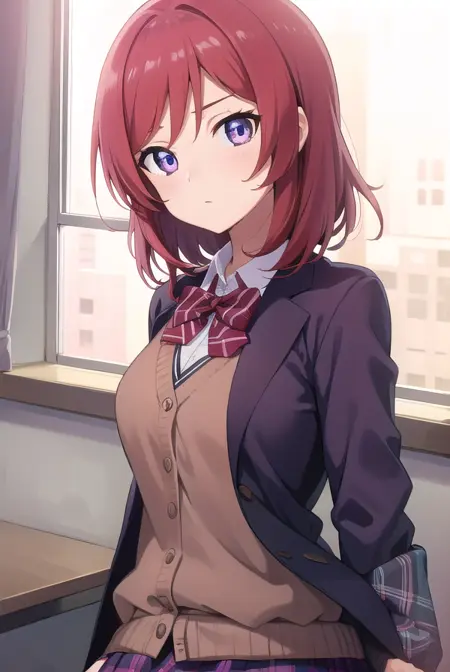 maki nishikino, (紫色眼睛:1.1), 红发, 短发,