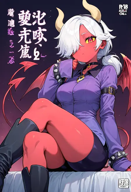 | 학습된 단어 | trixie colette, 1girl, solo, perfect body, demon girl, red skin, white hair, short ponytail, low ponytail, hair over one eye, red eyes, yellow sclera, demon horns, hairband, choker, demon wings, demon tail, purple shirt, long sleeves, sleeves past wrists, spikes, arm belt, spiked bracelet, bike shorts, boots, knee boots복사됨! |