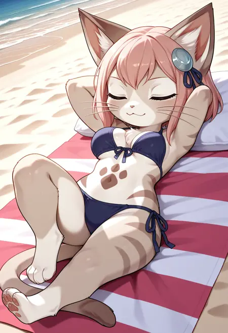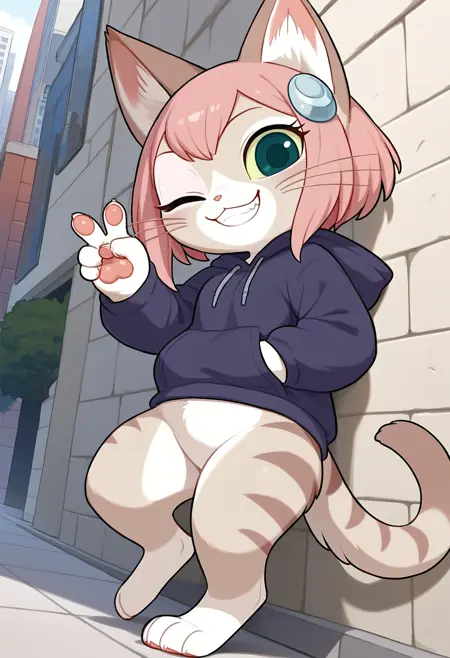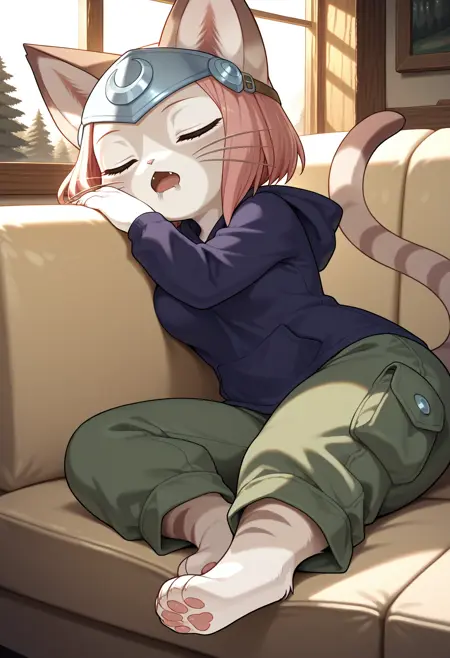 主要触发词:Tsukino \(怪物猎人故事\),毛茸茸的女性,Felyne,浅棕色毛发,棕色条纹,双色毛发,粉色头发,绿色眼睛,黄色眼白,猫尾,趾行性,腹部斑纹