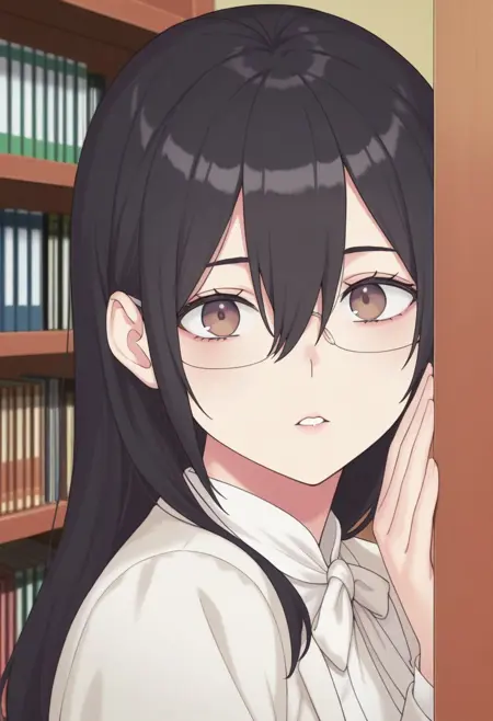 Original character: hanyu mayuri, long hair, black hair, glasses, brown eyes
