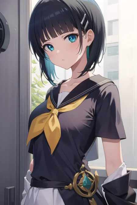 School: black sailor collar, collarbone, neckerchief, sailor collar, yellow neckerchief,