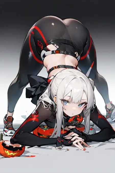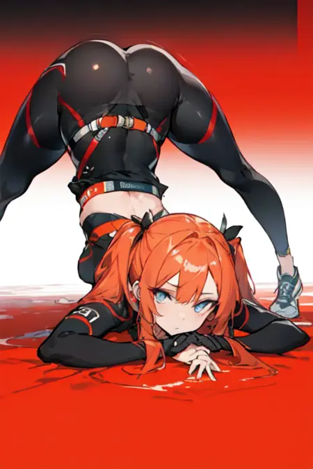 示例提示:1girl, solo, looking at viewer, full body, ass, meme, top-down bottom-up, leggings, flexible, jack-o' challenge, hands on ground, spread legs