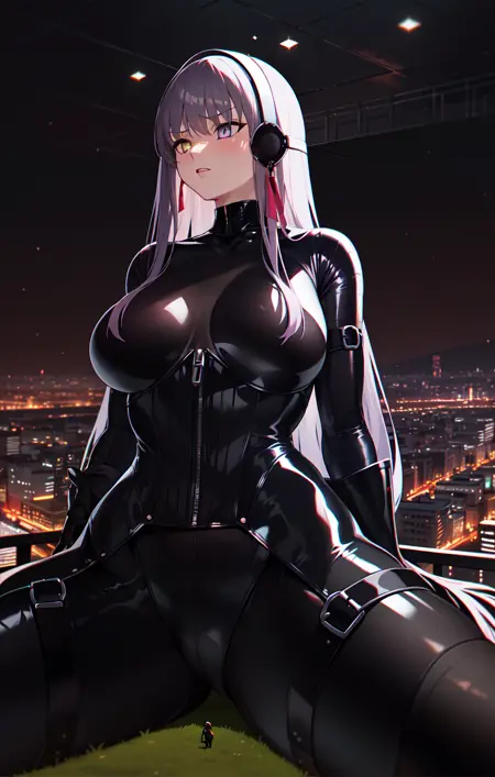 프롬프트 “giant, giantess”를 사용하여 그녀의 거대한 체구를 생성할 수 있습니다.