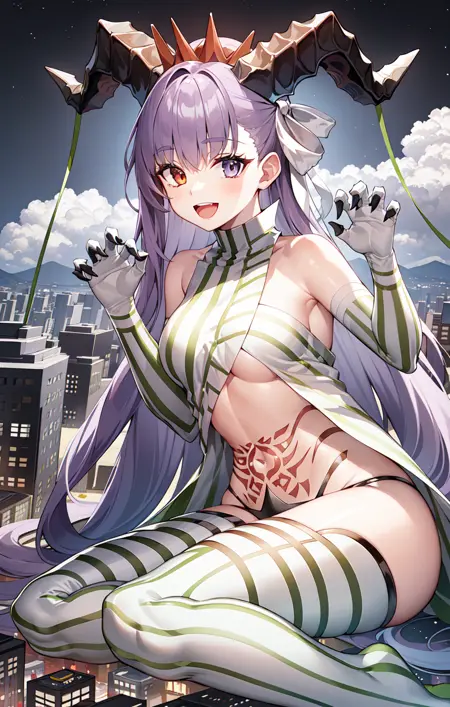 “giant, giantess” 프롬프트를 사용하여 그녀의 거대한 체구를 생성할 수 있습니다.