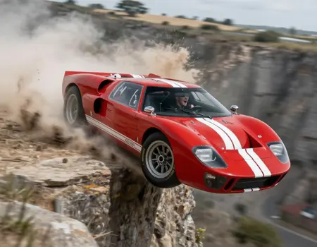 トレーニングに使用した画像は、白いラリー ストライプの赤いGT-40 Mark IIでしたが、異なる色をプロンプトしてもよく反応します。グラフィティやゴーストフレイムをリクエストして実験したこともあります。例の画像をご覧ください。誤って6輪の車を生成した例も投稿しましたので、チェックしてみてください、笑