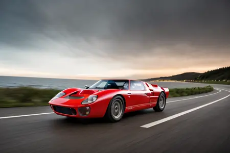 トレーニングに使用した画像は、白いラリー ストライプの赤いGT-40 Mark IIでしたが、異なる色をプロンプトしてもよく反応します。グラフィティやゴーストフレイムをリクエストして実験したこともあります。例の画像をご覧ください。誤って6輪の車を生成した例も投稿しましたので、チェックしてみてください、笑