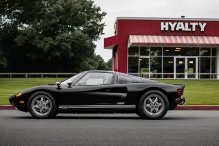 The training images were of a red GT-40 Mark II with white rally stripes, but it responds well to prompting different colors. I've even experimented with asking it for graffiti and ghost flames, see the example photos. I even posted a error 6 wheeler, check that out, lol