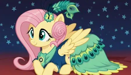 beautiful dress resembling peacock feathers in green and turquoise tones