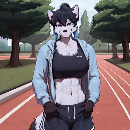 ava, canine, furry, white fur, blue highlights, black hair, long hair, sidelocks