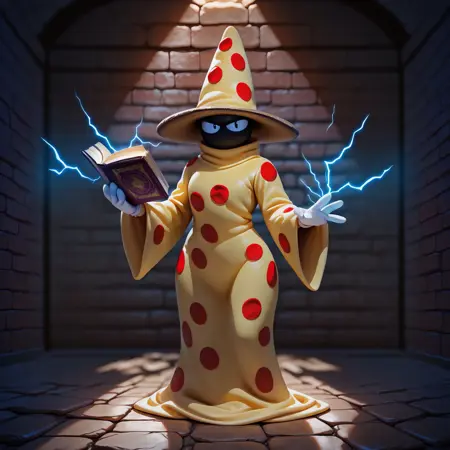 タグ: pizzard, シングル, フルボディ, 帽子, ポカドット, 黒い目, 黒い肌, ローブ, 長袖, 白い手袋, 指の数が少ない