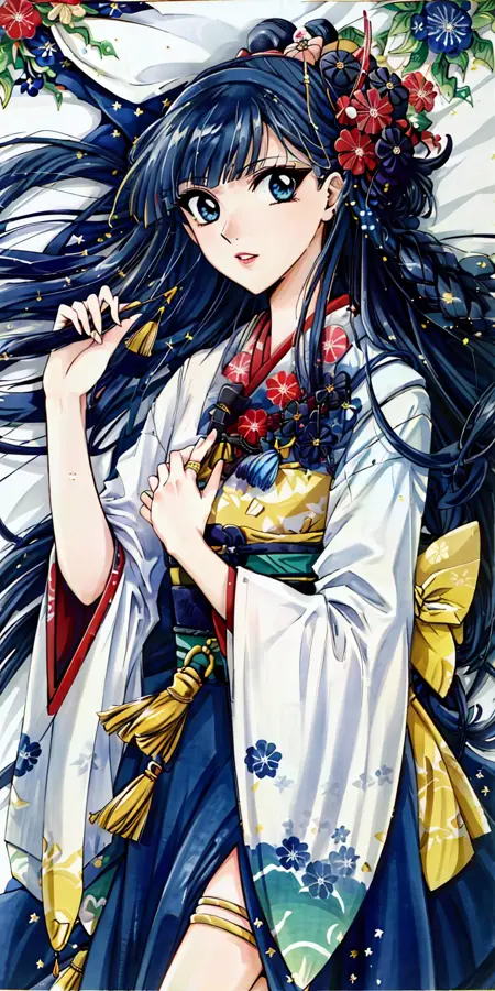 의상 예시: 머리끈, 갑옷 드레스, 갑옷, 머리장식, 흉갑, 어깨보호대, 어깨갑옷, 팔꿈치 장갑, 장갑, 허벅지 긴 양말, 부츠, 학교 유니폼, 블레이저, 넥타이, 긴 소매, 헤어밴드, 기모노, 일본식 옷, 넓은 소매, 레오타드, 발레리나, 발레 신발, 드레스, 셔츠, 재킷