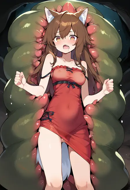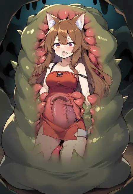 (in monster,vore,x-ray,cross-section,tentacle pit,see-through:1.2),restrained,upside-down,legs together,knee to chest,spread legs,