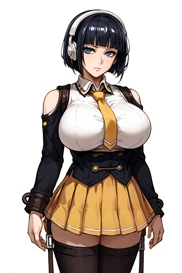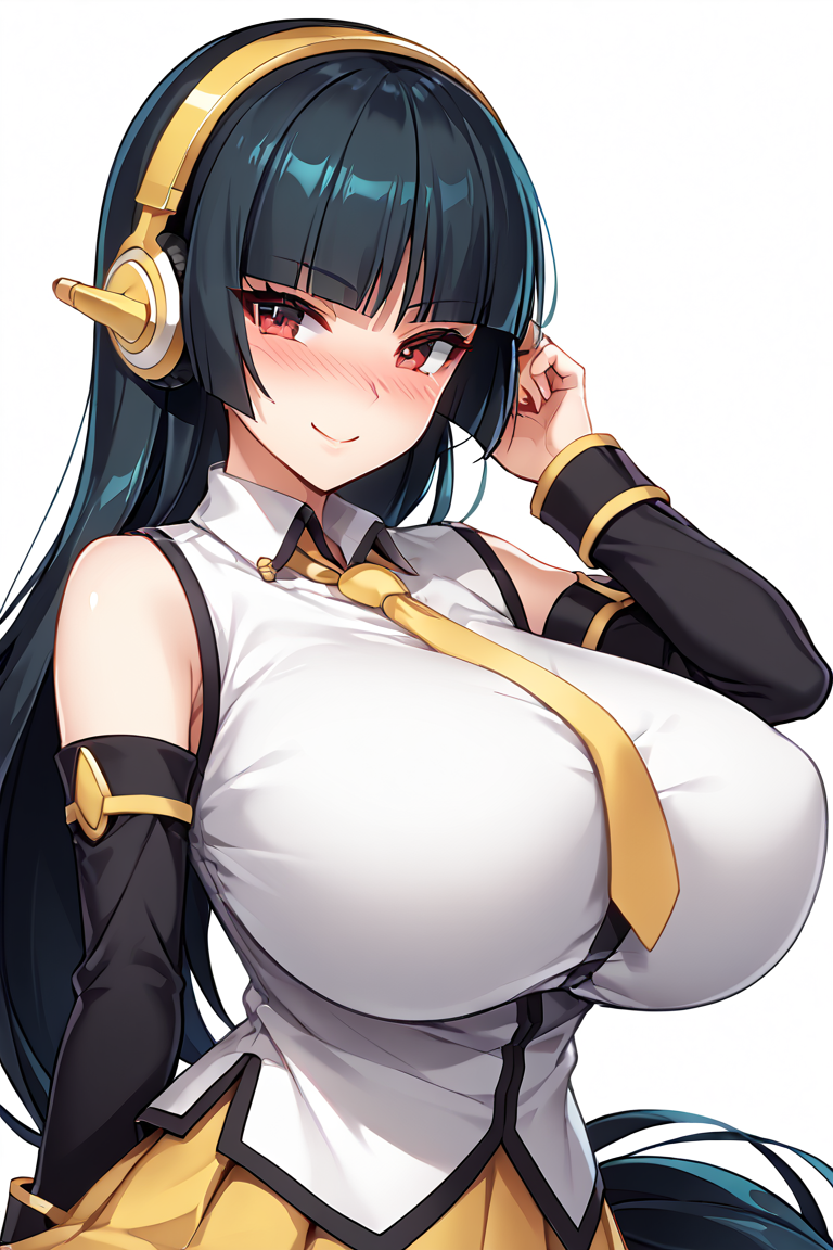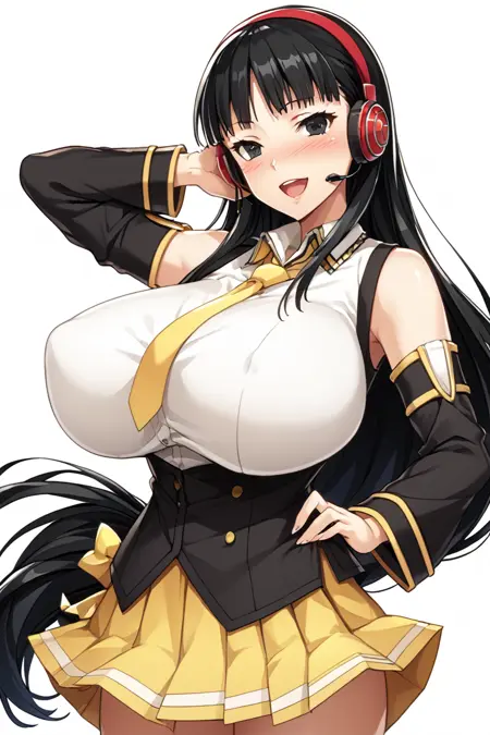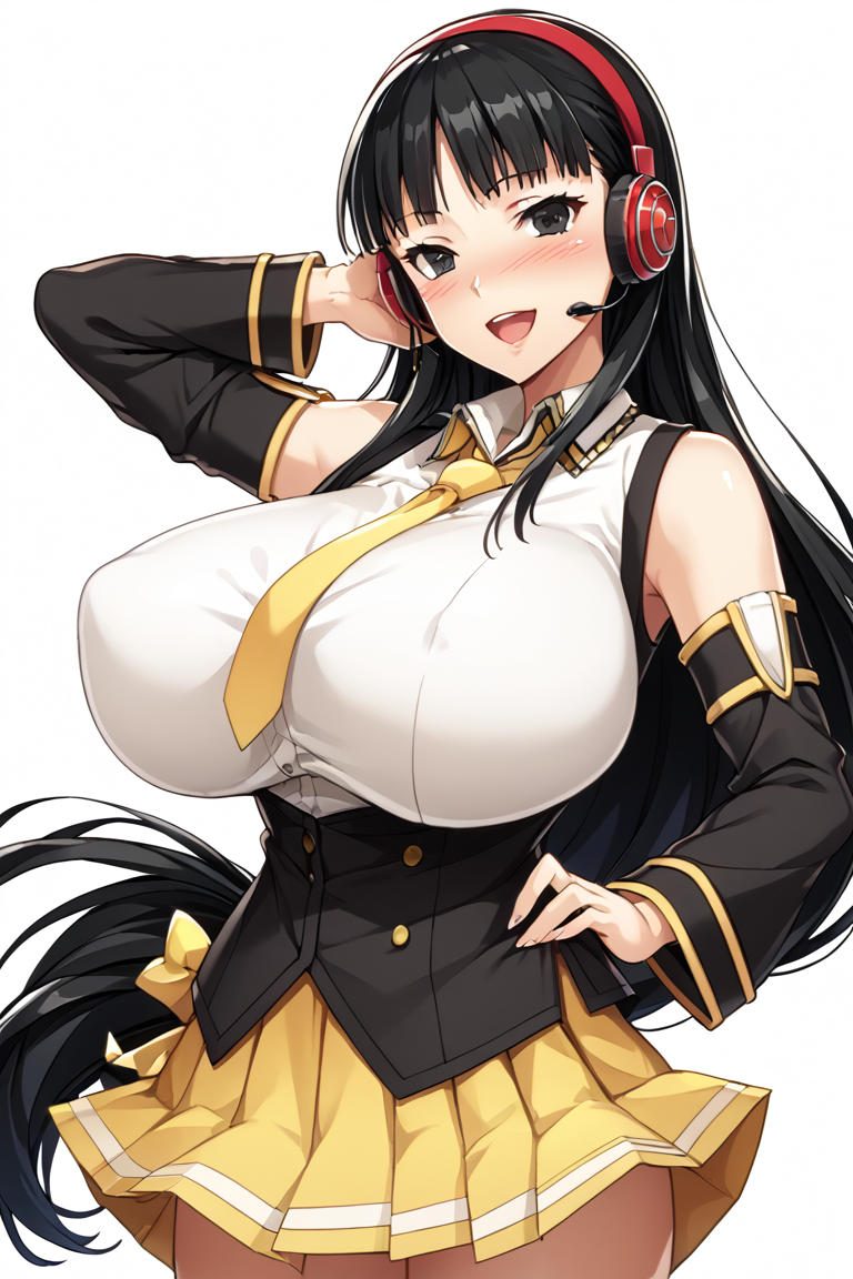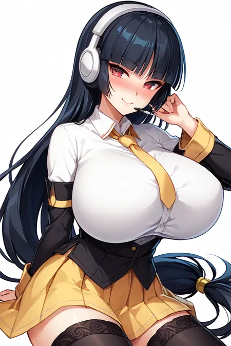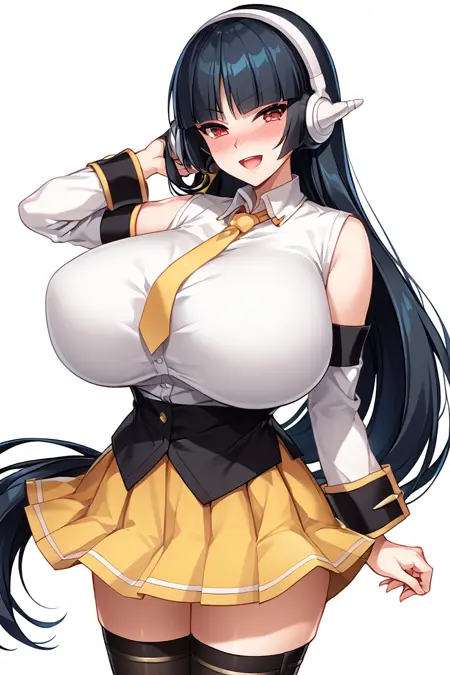TAGS : LD streamer,yellow skirt,zettai ryouiki,black thighhighs,pleated skirt,miniskirt,Yellow necktie,detached sleeves,low-tied long hair,White shirt,