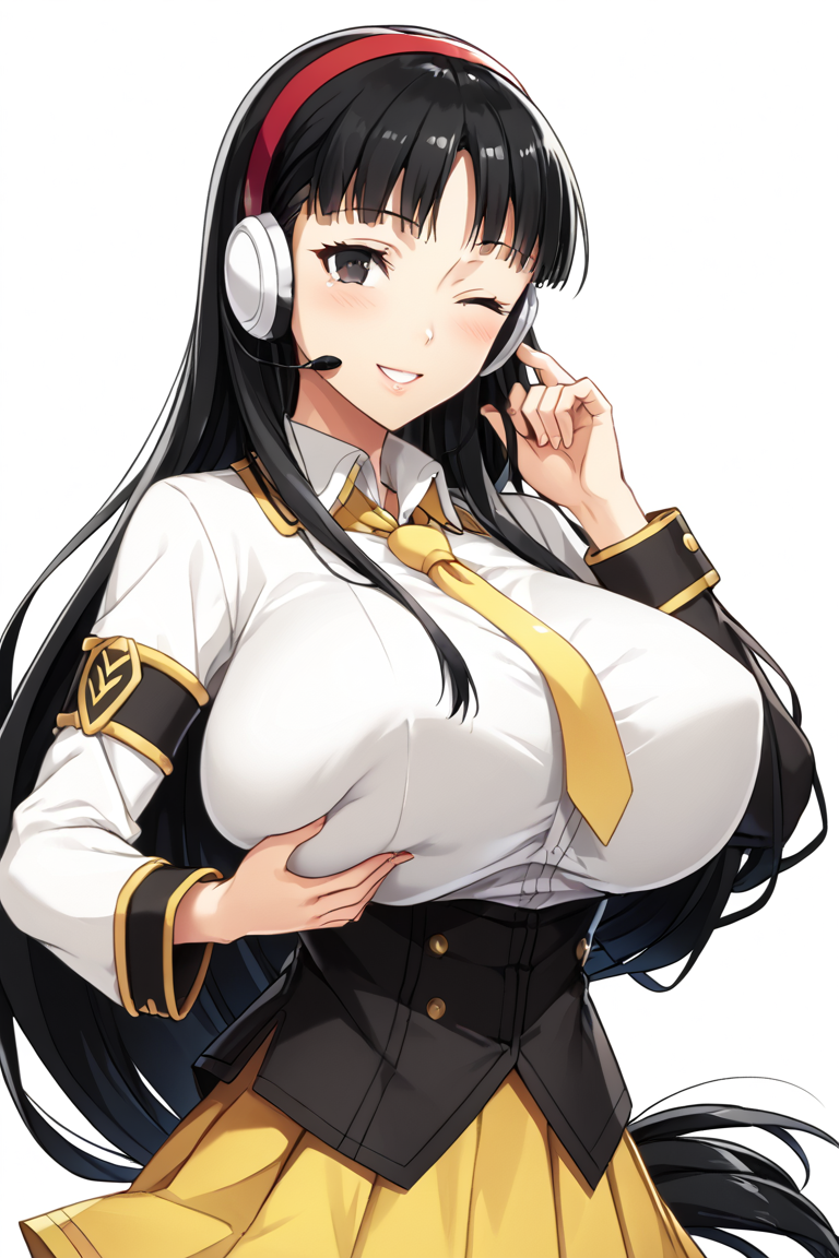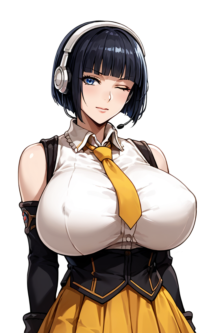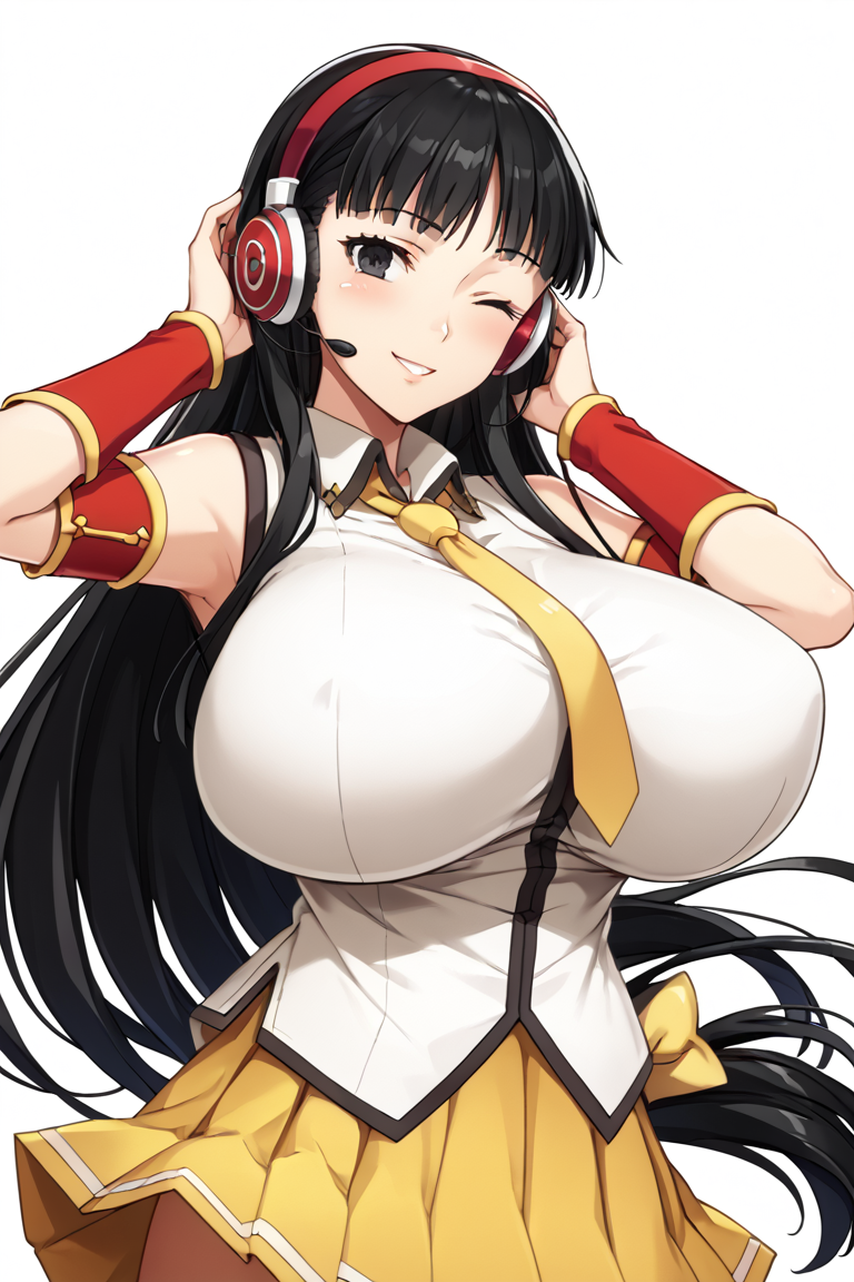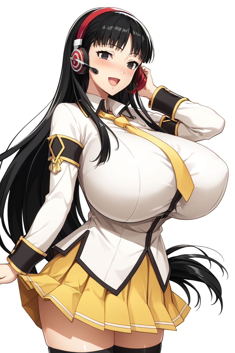 TAGS : LD streamer,yellow skirt,zettai ryouiki,black thighhighs,pleated skirt,miniskirt,Yellow necktie,detached sleeves,low-tied long hair,White shirt,