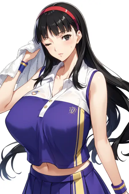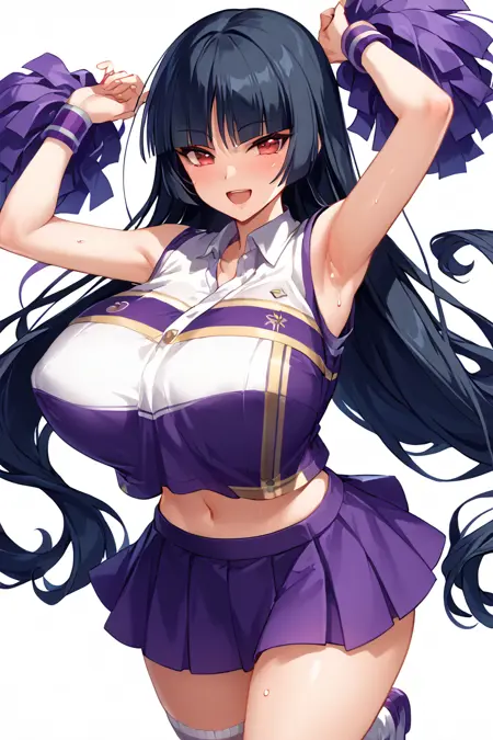 标签:百褶裙,露腹,无袖,腕带,紫色裙子,啦啦队队员,运动服,汗水,