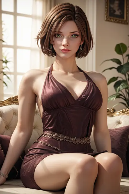 SH4Eileen, 1girl, green eyes, short hair, brown hair