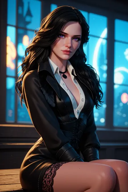 TW3Yennefer, 1girl, black hair, purple eyes, long hair