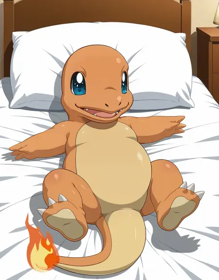 関連ワード:オレンジ色の肌、青い目、緑の目、アクア色の目、明るい瞳、白い瞳、牙、犬歯、牙を剥き出し、爪、ドラゴンボーイ、ドラゴンの尾、炎先の尾、火、炎、人間なし、モンスターボーイ、ポケモン(生物)