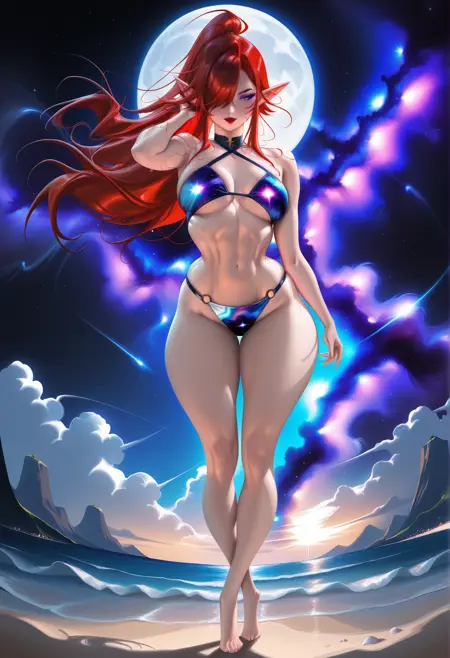 v1.0 - 銀河模様のビキニトップとビキニボトムを含む画像を生成します。推奨LoRAウェイト:0.7-0.8