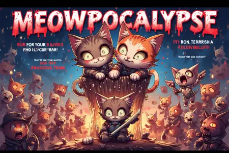 喵喵!哦不!僵尸爆发来了!想象一个猫咪变成僵尸的世界!想象毛茸茸的猫咪蹒跚而行,喵喵叫着要“脑浆”!🧟🐱 情景: