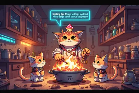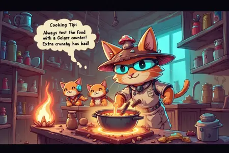 生存提示:储备防辐射服和猫零食,用以驯服它们!